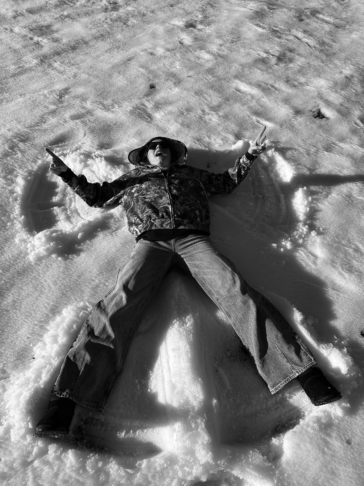 While waiting for the snow to accumulate is never to early to make a snow angel.