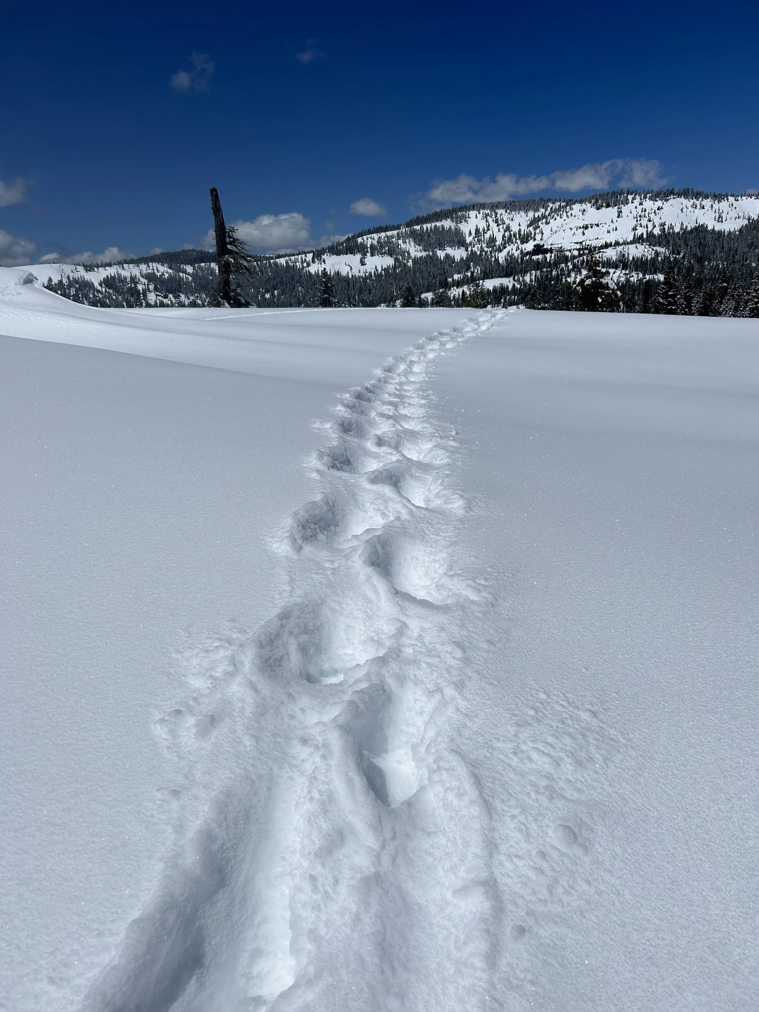 Figure 1: The first bear tracks on Osborne Ridge from this year, April 7th 2024. Photo Credit: Levi Steinhauer